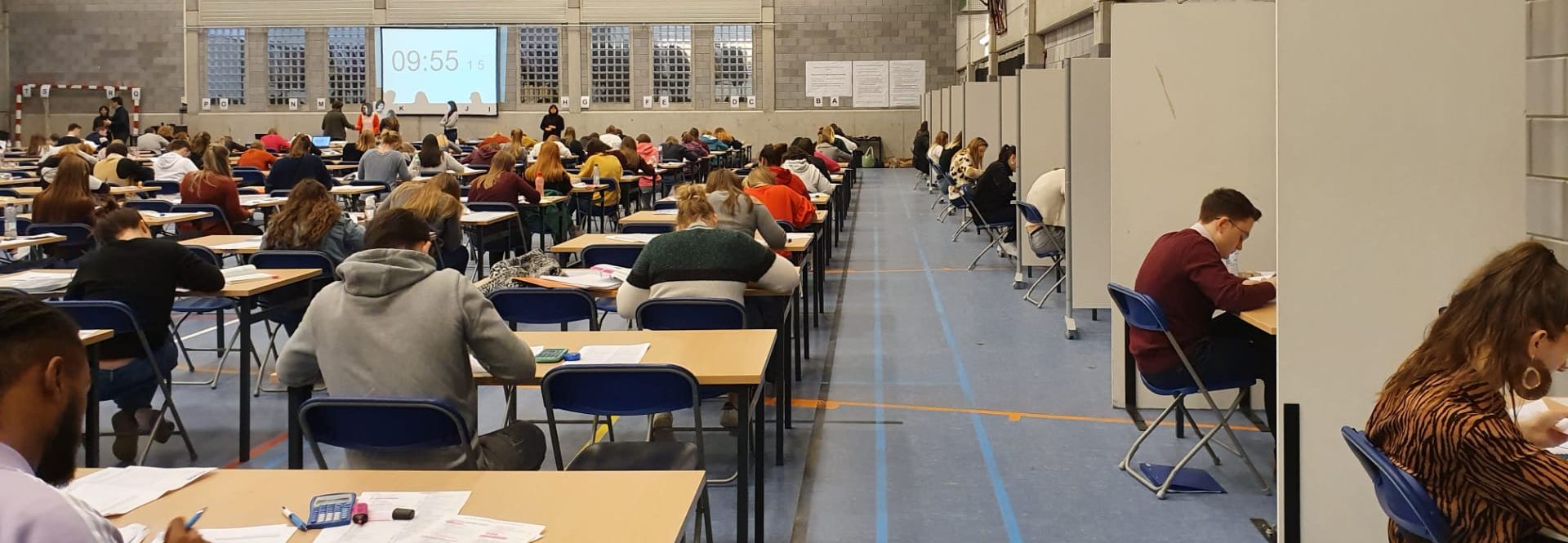 - Studenten mogen tijdens het examen iets kleins drinken of eten (bv. druivensuiker of een droge snack, geen broodjes). “Uiteraard geen alcoholische dranken”, lacht Leen.